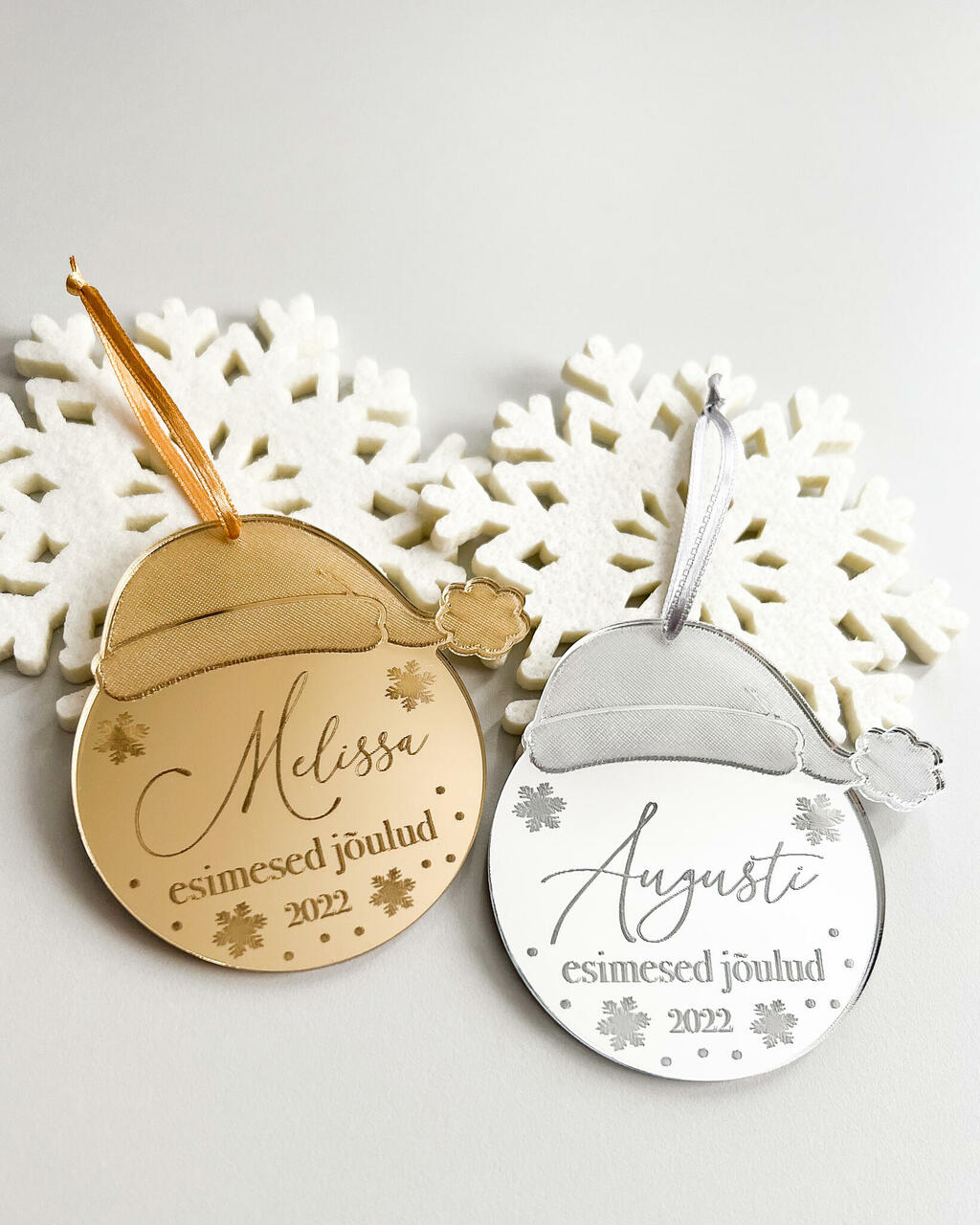 Tore jõuluehe mälestuseks teie pisikese esimestest jõuludest. Ehe on valmistatud peegelakrüülist. Kääname nime ka nii, et alumise tekstiga kokku sobiks.