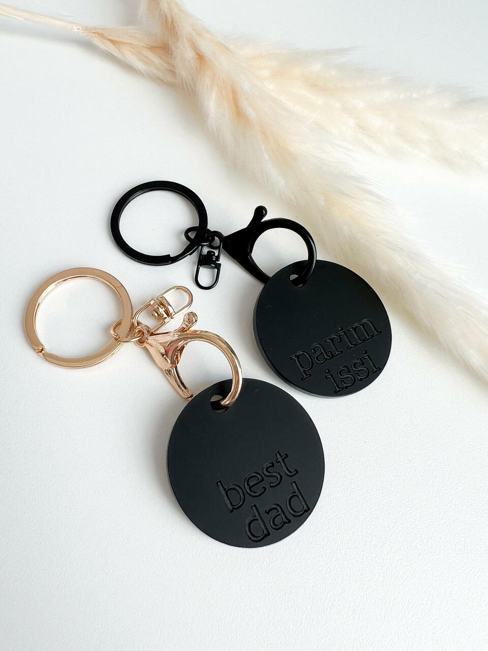 Midagi erilist kõige kallimatele isadele. Matist mustast akrüülist võtmehoidja, millele saate lisada endale meelepärast tooni võtmerõnga ja teksti.
