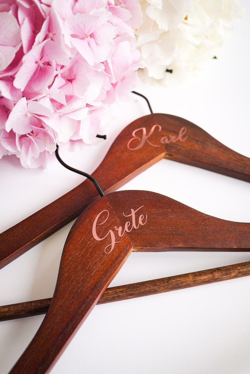 Imeilus pruun puidust riidepuu, millele saab lisada pruutpaari nimed. Lisakas on see ka tore üllatus pruutneitsidele ja poissmeestele , millel enda riideid pulmapäeval hoida. Tore kingitus ja mälestus teie päevast.